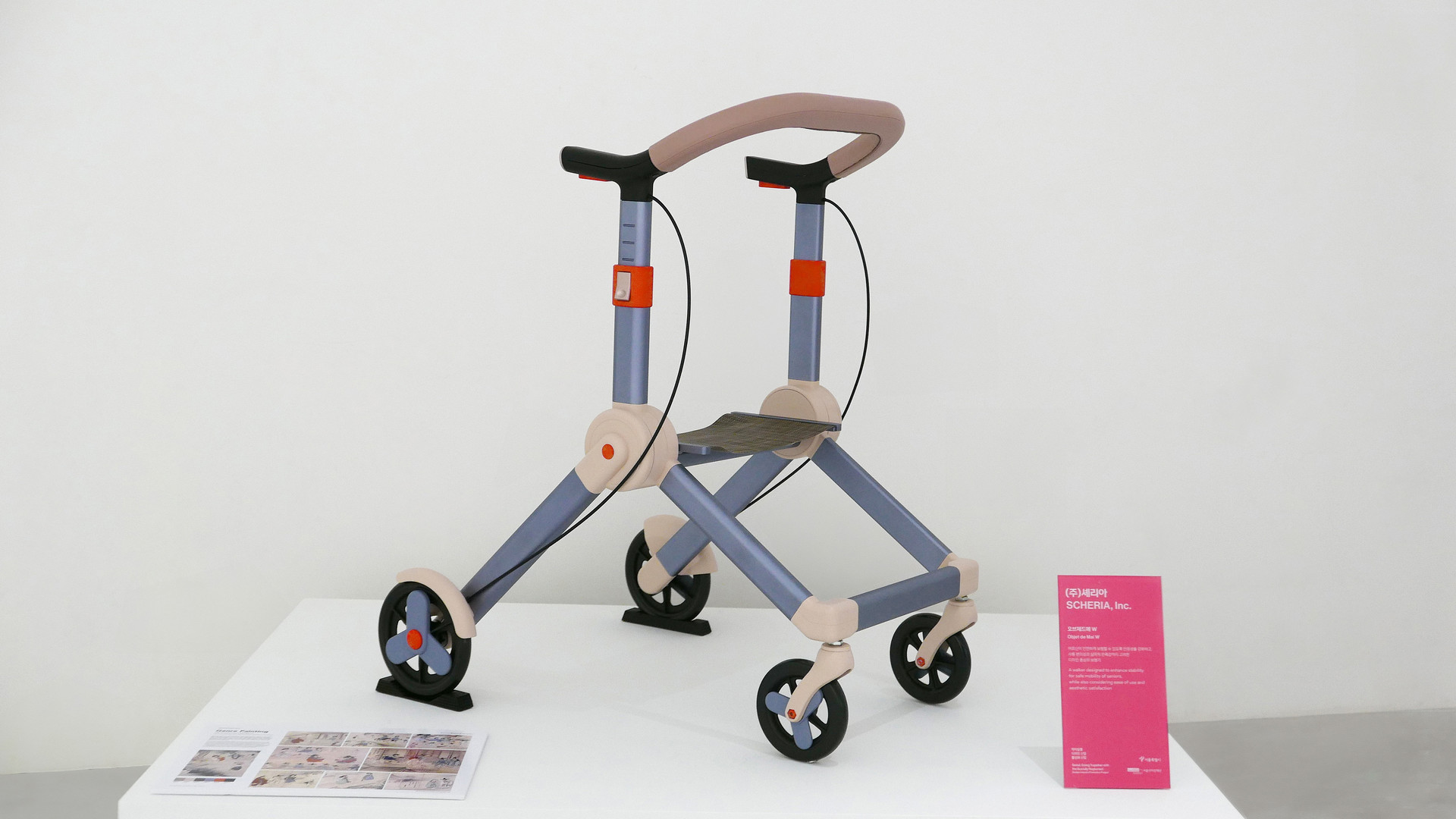 Shown at Seoul Design Week 2025 at DDP, this elderly walker prototype reframes mobility support as a cultural design object. Minimal functional geometry is paired with CMF inspired by the palette of Joseon painter Shin Yun-bok, translating traditional Korean color sensibility into a contemporary, dignified presence.